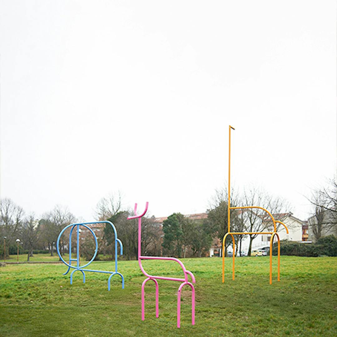 Even the choice of a park visited by a large number of children as the site for the installation is no coincidence. "We wanted it to be a lively, accessible place where children could interact with the installation on the spur of the moment," she continues. "Animal Factory" is not just a sculpture: it is a work of art that invites children to play and to explore. The colourful iron animals, with their soft, stylised forms, are designed to be enjoyed on a daily basis. “The antelope, for example, was made expressly for us," she says proudly.
