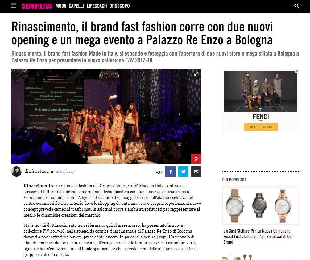 Rinascimento, il brand fast fashion corre con due nuovi opening e un mega evento a Palazzo Re Enzo a Bologna